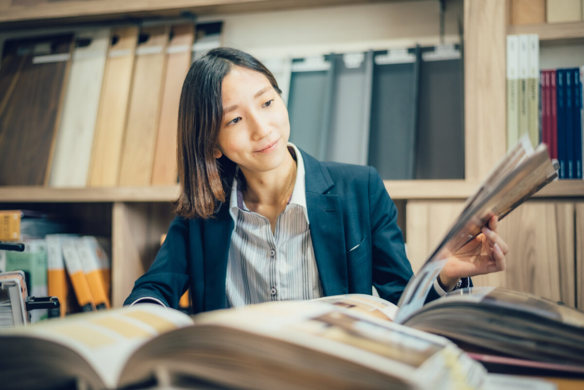 お客様の好みやライフスタイルに合わせて、内装のデザインやカラーコーディネートをトータルに提案する仕事です。